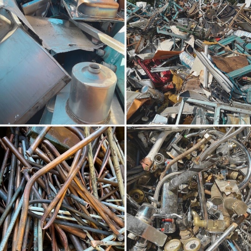 - Mässing (Cromade föremål t.ex. kranar är OK, även koppar kan sitta ihop med mässingen)