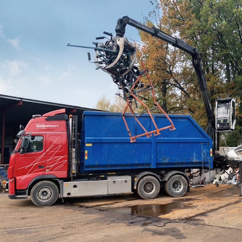 Vi kommer ut till er på plats och lastar ert skrot med vår lastbil med kran. Vi klarar att lyfta max 2 ton styckevikt och lastar ca 30 kbm på flaket. Tar vi med släpet kan vi få med upp till 130 kbm. Det är viktigt att det finns utrymme och bärighet i marken när vi kommer och ska lasta. Ring för en dialog om ersättning och kostnad.