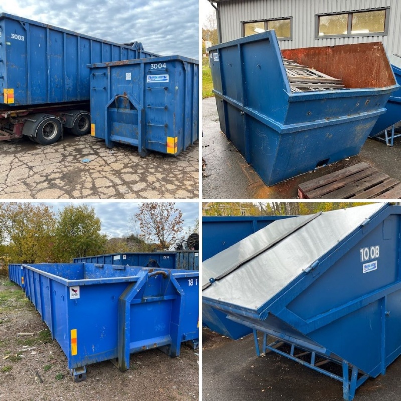 Vi har containers i många olika storlekar. Allt från små lådor på 0,5kbm till stora lastväxlarflak på 50 kbm.